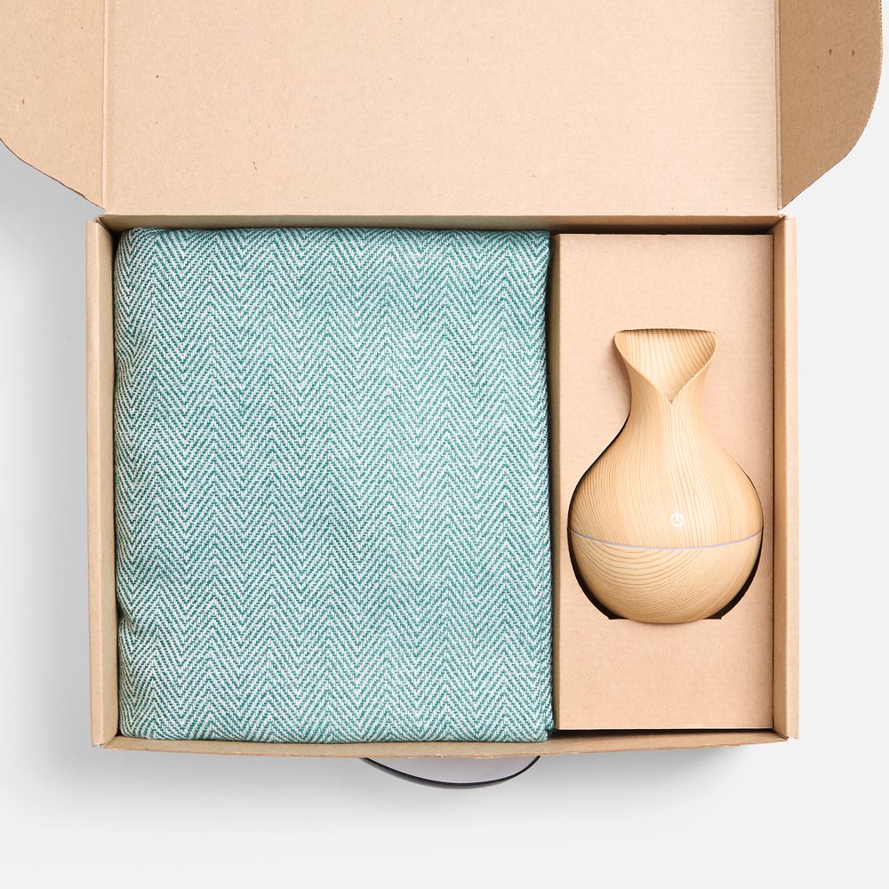Мягкий плед нежных оттенков подарит тепло и комфорт, а изящный увлажнитель наполнит воздух свежестью и приятным ароматом. Этот набор — гармония красоты и функциональности, где каждый момент посвящен ценному отдыху и расслаблению.