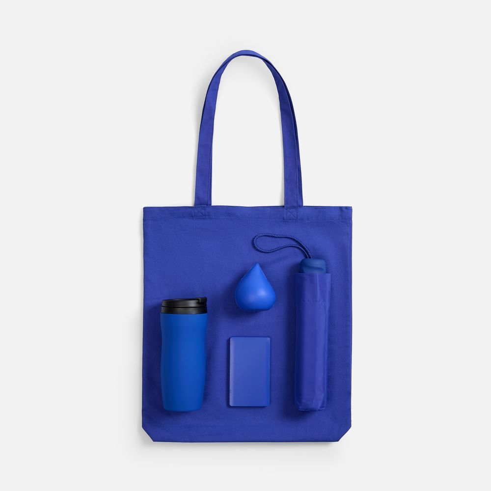 зонт — полиэстер 190T, ручка — пластик; покрытие софт-тач; каркас, спицы — металл; аккумулятор — пластик; крышка термостакана, внутренняя колба — пластик, корпус — нержавеющая сталь; покрытие софт-тач; сумка — хлопок 100%, плотность 210 г/м²; антистресс — вспененный полиуретан