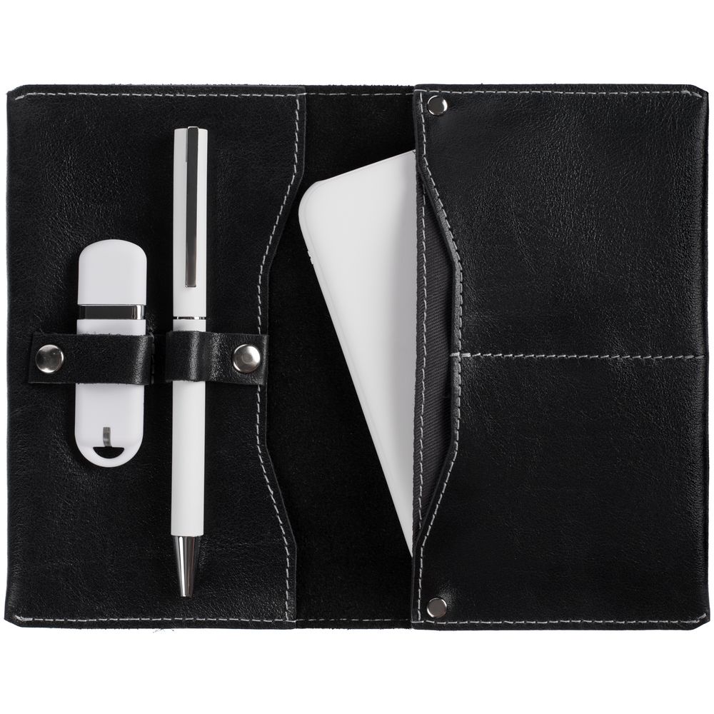 органайзер — натуральная кожа; аккумулятор — пластик, покрытие софт-тач; флешка — пластик, покрытие софт-тач; ручка — металл, покрытие софт-тач