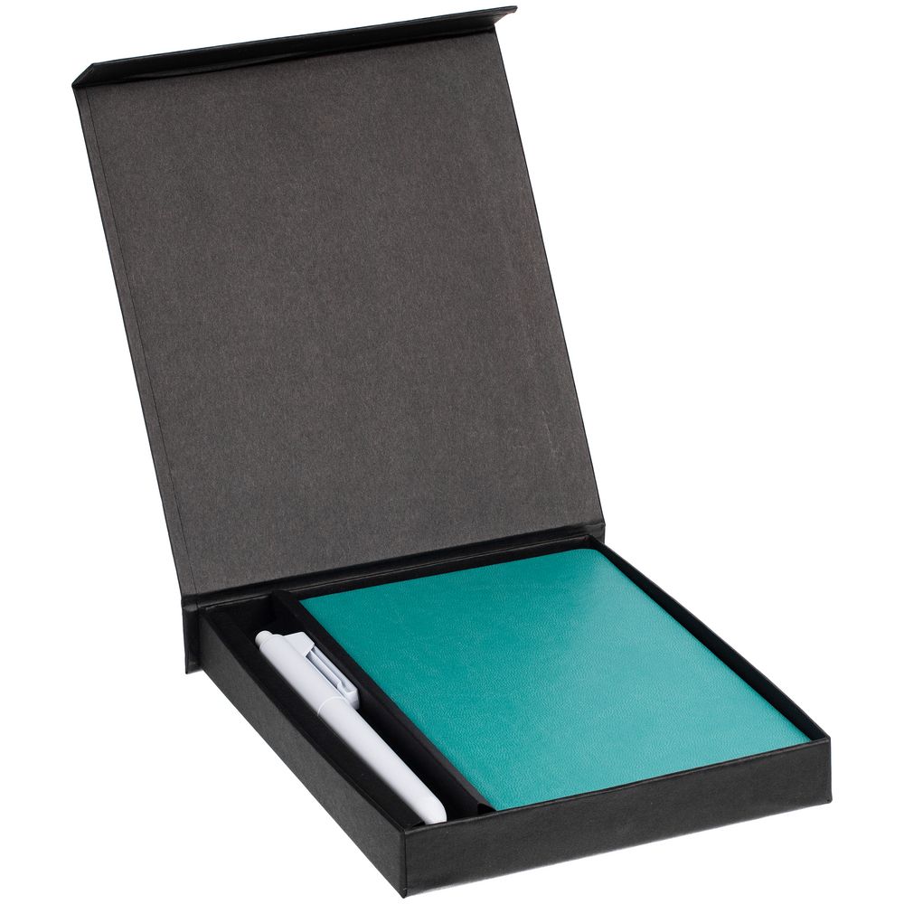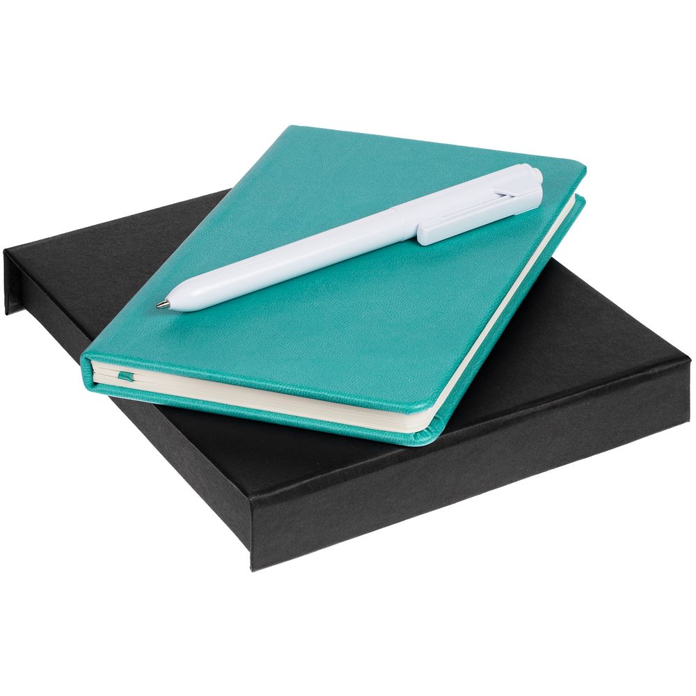 блокнот — искусственная кожа; ручка — пластик; коробка — переплетный картон