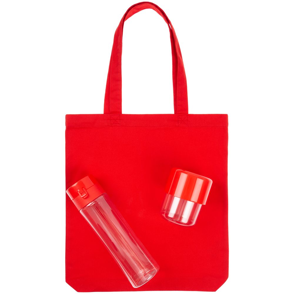 сумка — хлопок; ланчбокс, бутылка — пластик