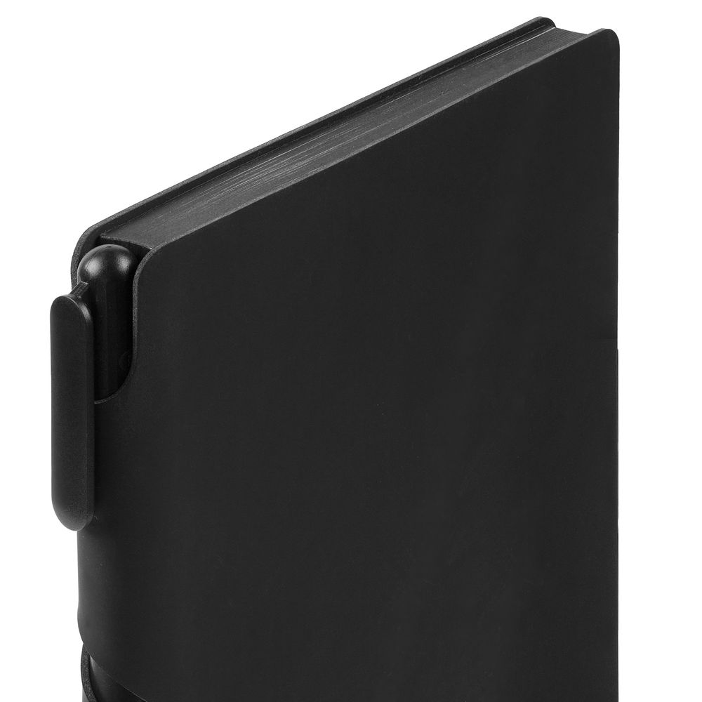 Удобный ежедневник с гибкой обложкой и местом под ручку в корешке, миниатюрная ручка из переработанного пластика и компактная самосборная коробка — простые составляющие полезного делового набора.