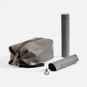 сумка — ПВХ; зонт — полиуретан, ТПУ; рама, спицы и шток — металл, стекловолокно; ручка — пластик, покрытие софт-тач