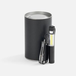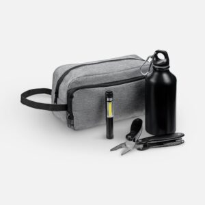 мультитул, фонарик, бутылка — алюминий; несессер — полиэстер