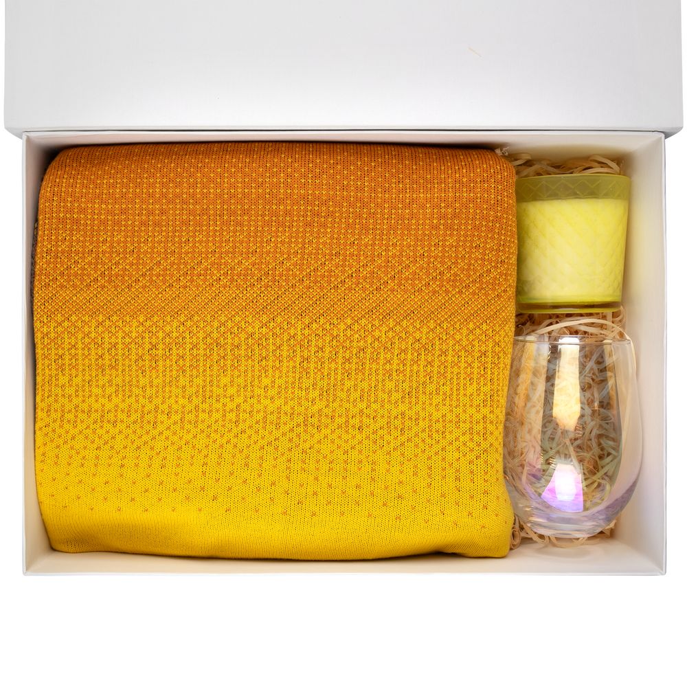 плед — акрил 100%; подсвечник — стекло; коробка — переплетный картон