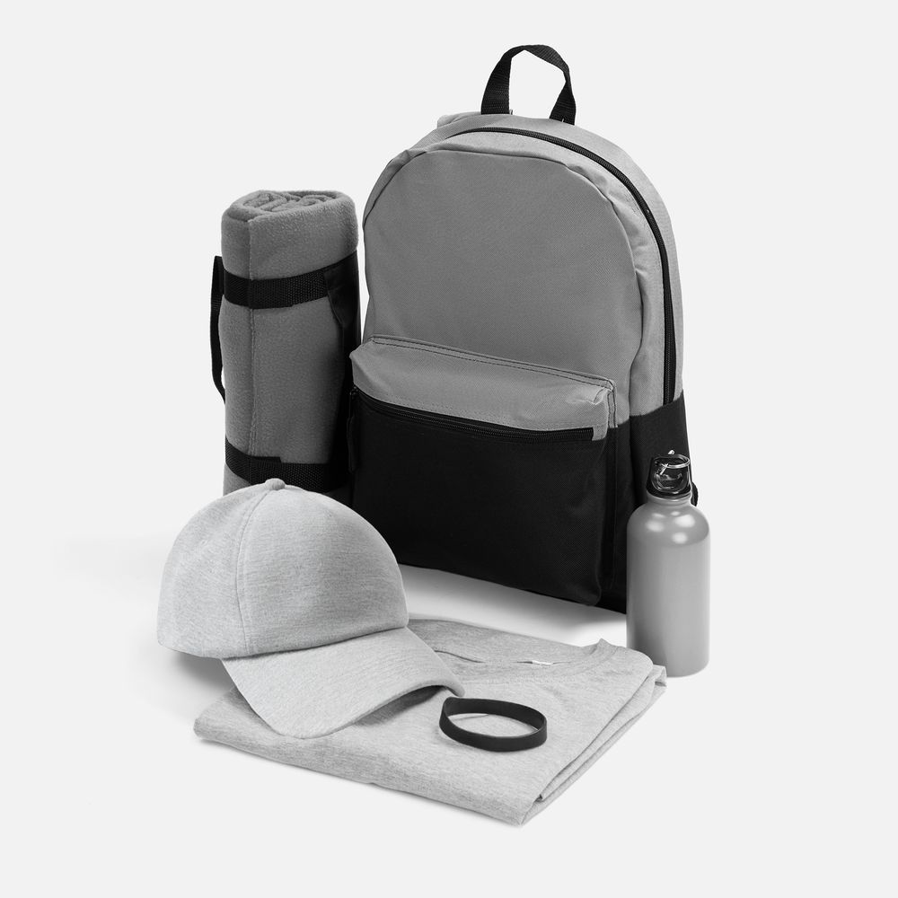 В комплект входят удобный силиконовый браслет, стильная бейсболка, функциональная бутылка для воды, легкая футболка и вместительный рюкзак, а также дорожный плед — все, без чего в первую очередь не обойтись на свежем воздухе. Этот практичный и стильный набор поможет с легкостью объединить команду, гарантируя комфорт и даря только яркие впечатления.
