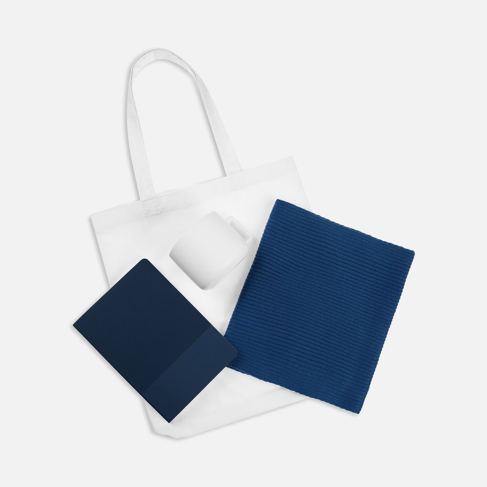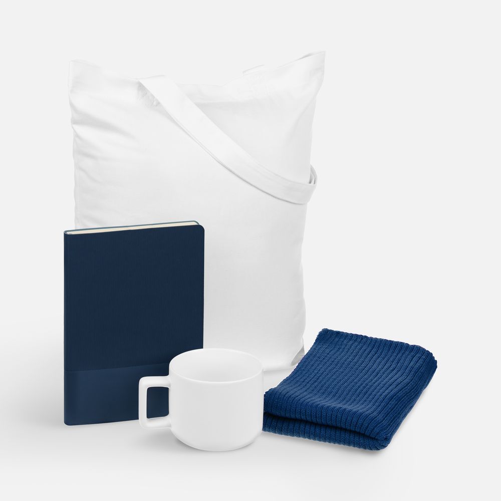сумка — хлопок 100%; шарф — акрил 100%; ежедневник — искусственная кожа; кружка — каменная керамика