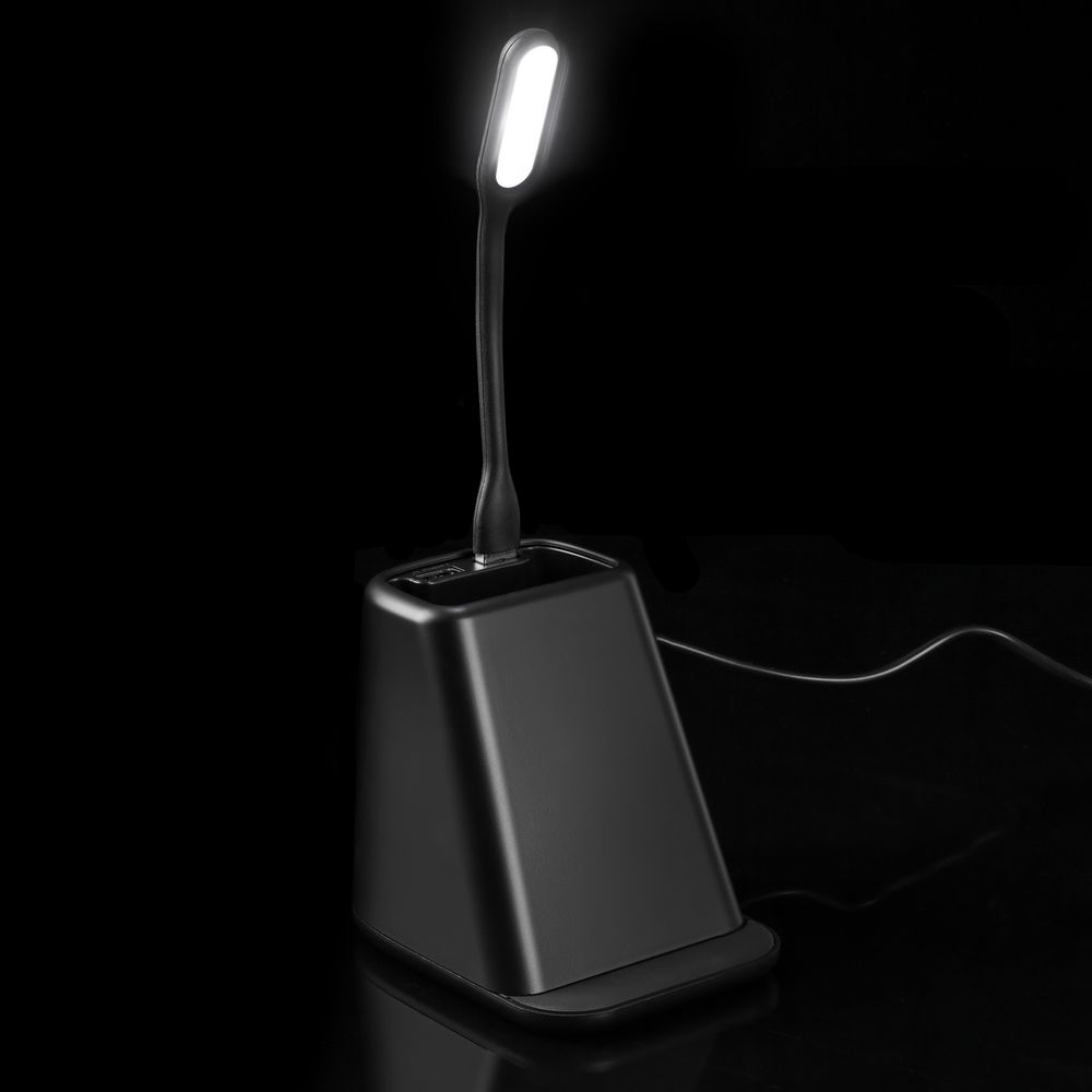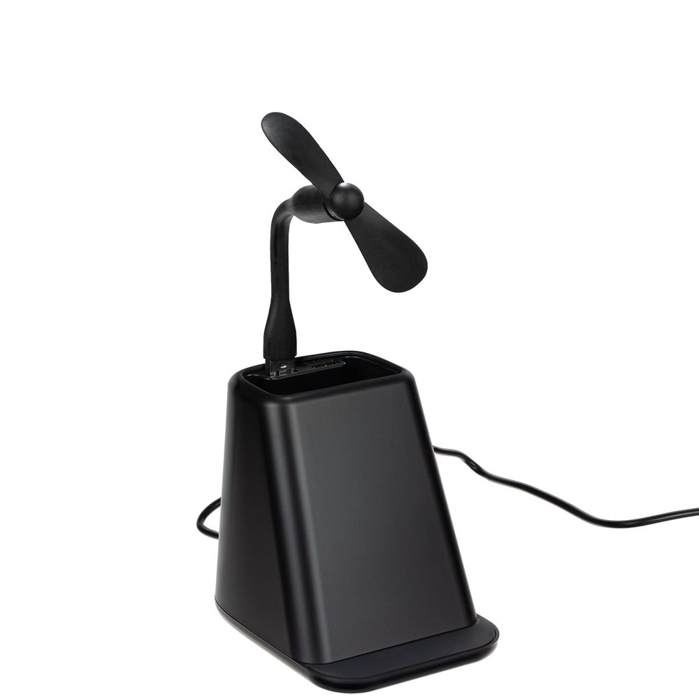 Настольный органайзер с зарядкой, лампой, вентилятором и подсветкой логотипа powerTower, черный