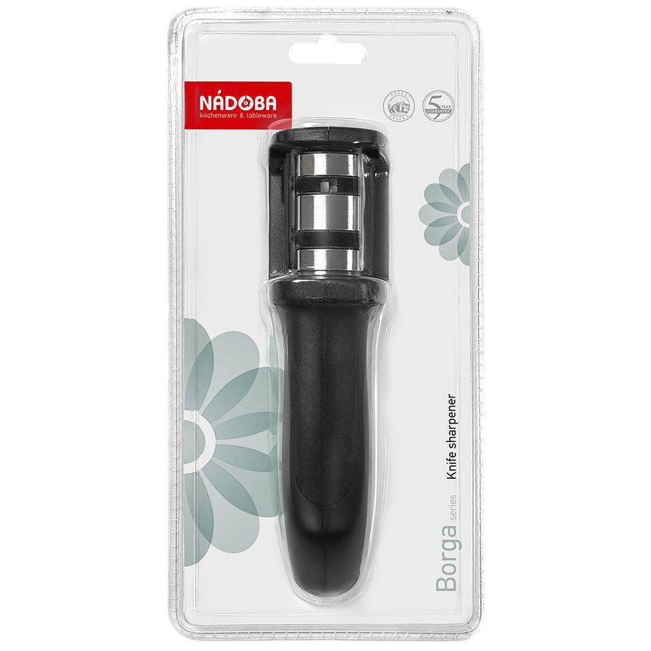 Ножеточка Borga оборудована двумя отверстиями с разными точильными элементами.