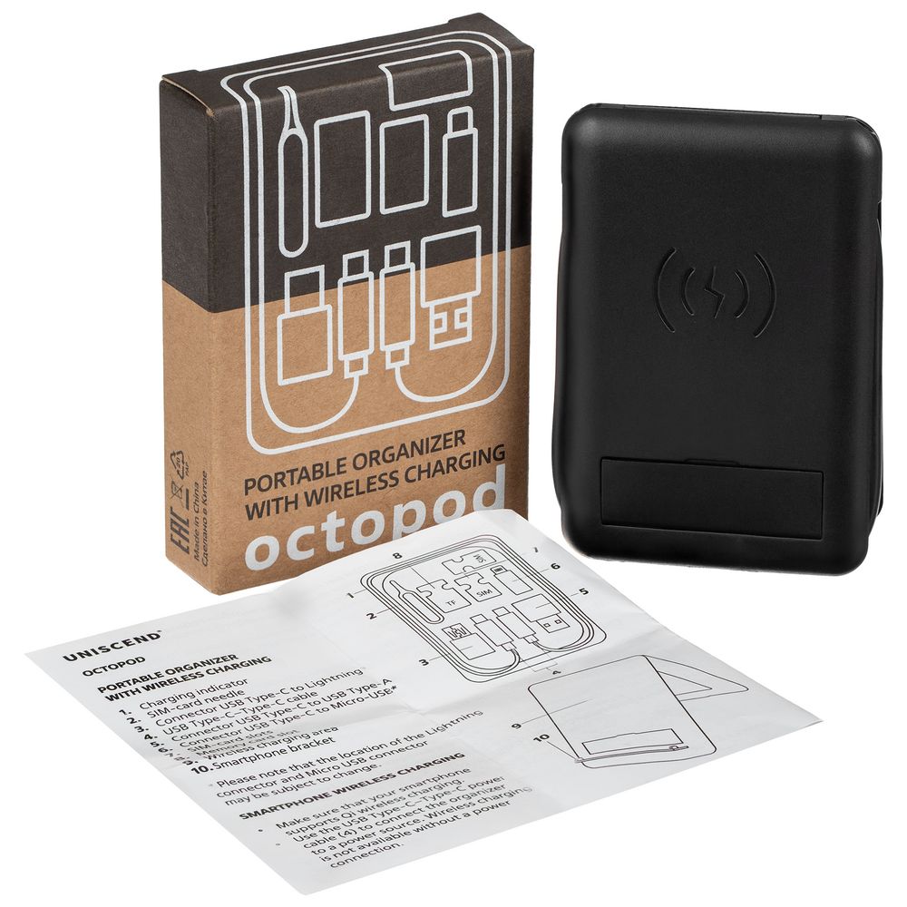 Органайзер с беспроводной зарядкой и набором адаптеров Octopod, черный