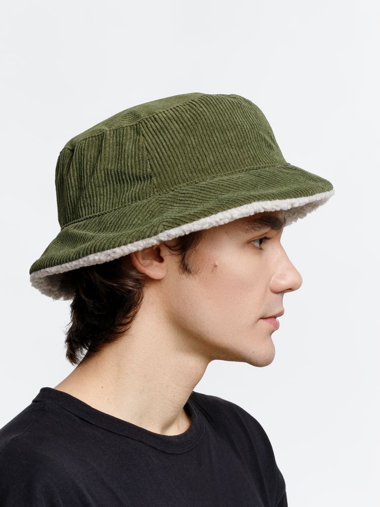 Теплая двухсторонняя панама. Одна сторона выполнена из вельвета, другая — из синтетической шерпы.