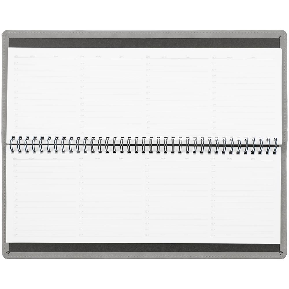 Планинг с твердой обложкой, выполнен из материала Nubuck Touch, серый СС.