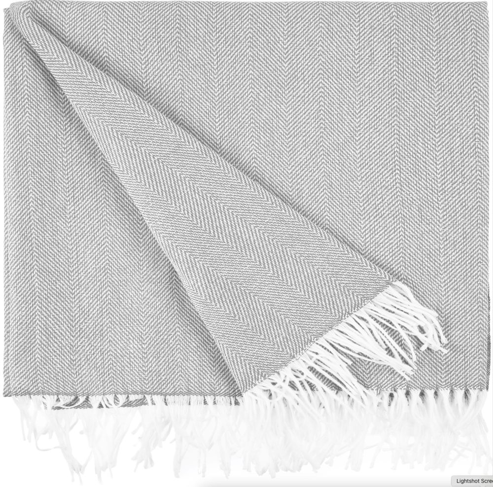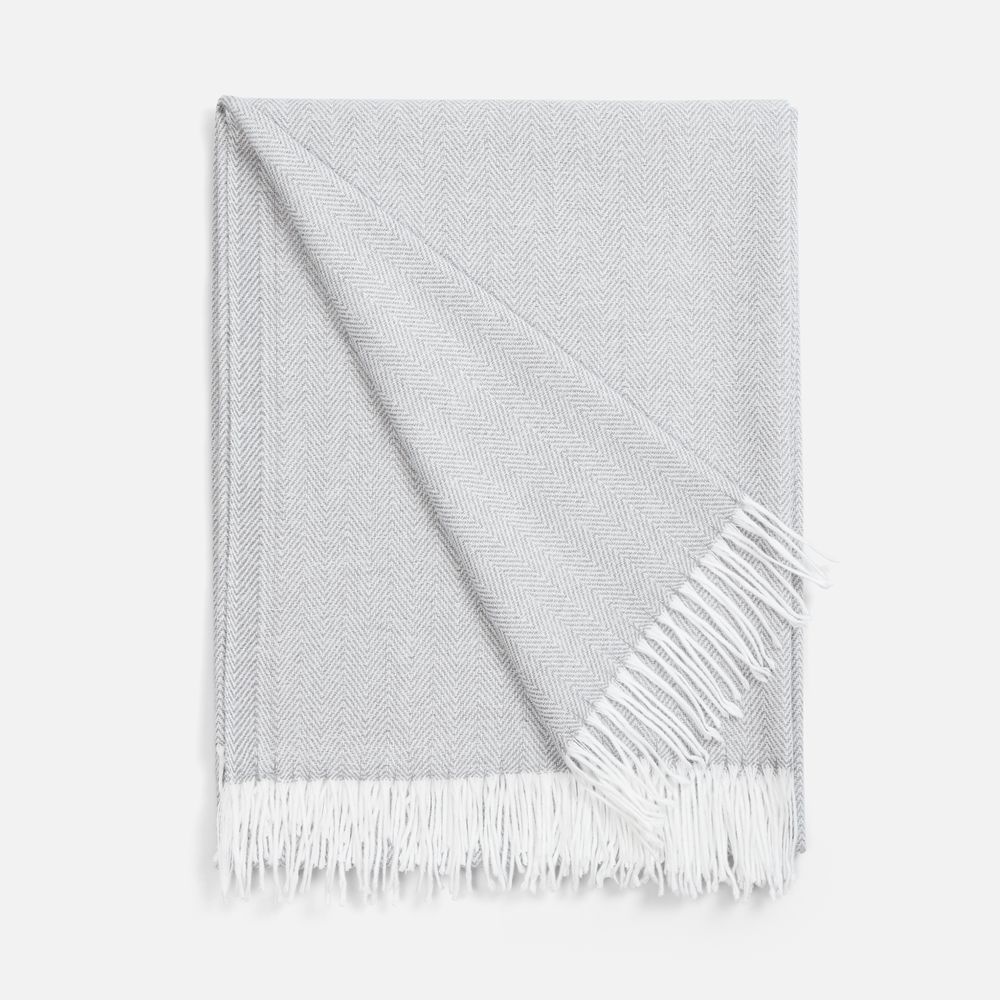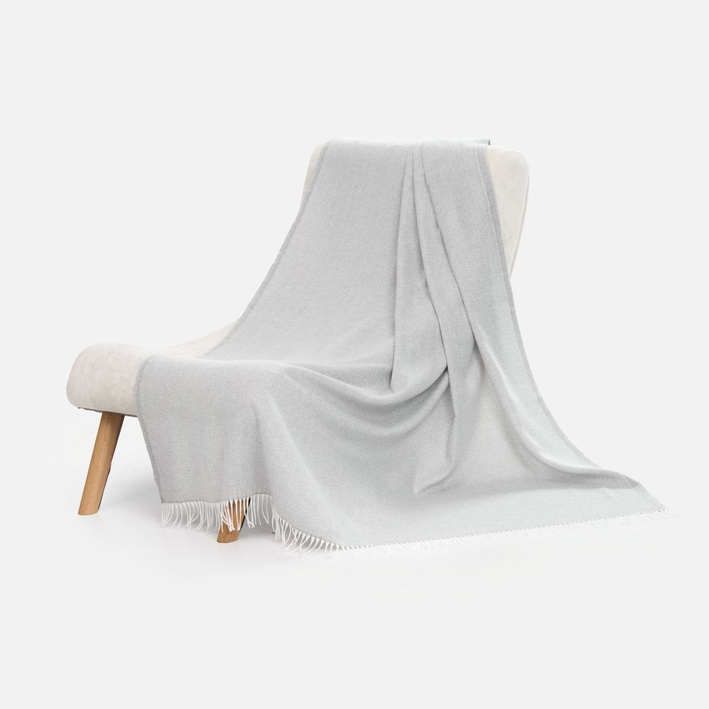 Классический рисунок «елочка» не слишком привлекает внимание, но в то же время добавляет изюминки. Смешанный состав пряжи продлевает срок службы и существенно облегчает уход за пледом.