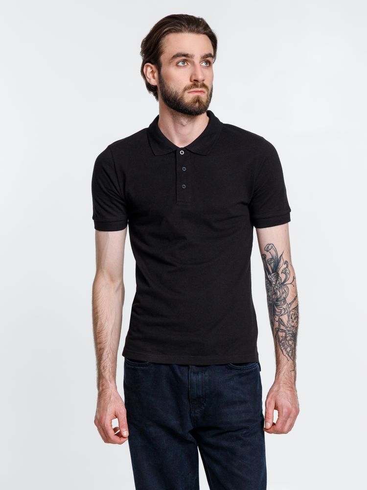 Мужская рубашка поло прямого силуэта с разрезами по бокам.