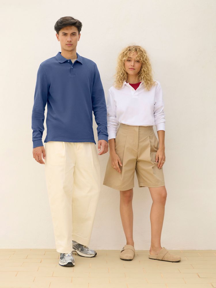 Рубашка поло унисекс прямого силуэта и с длинным рукавом.