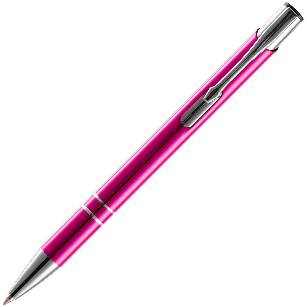 Яркая шариковая ручка с глянцевым цветным корпусом и хромированными деталями.
