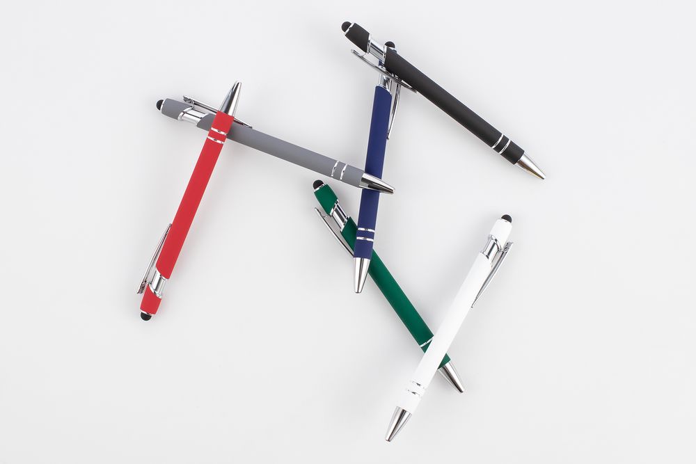 Шариковая ручка с покрытием софт-тач, эффектными хромированными элементами и стилусом — приятная опция для всех любителей электроники.