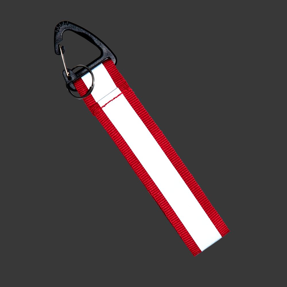 Светоотражающий брелок Flashline становится заметным в темное время суток при попадании света на центральную полосу.