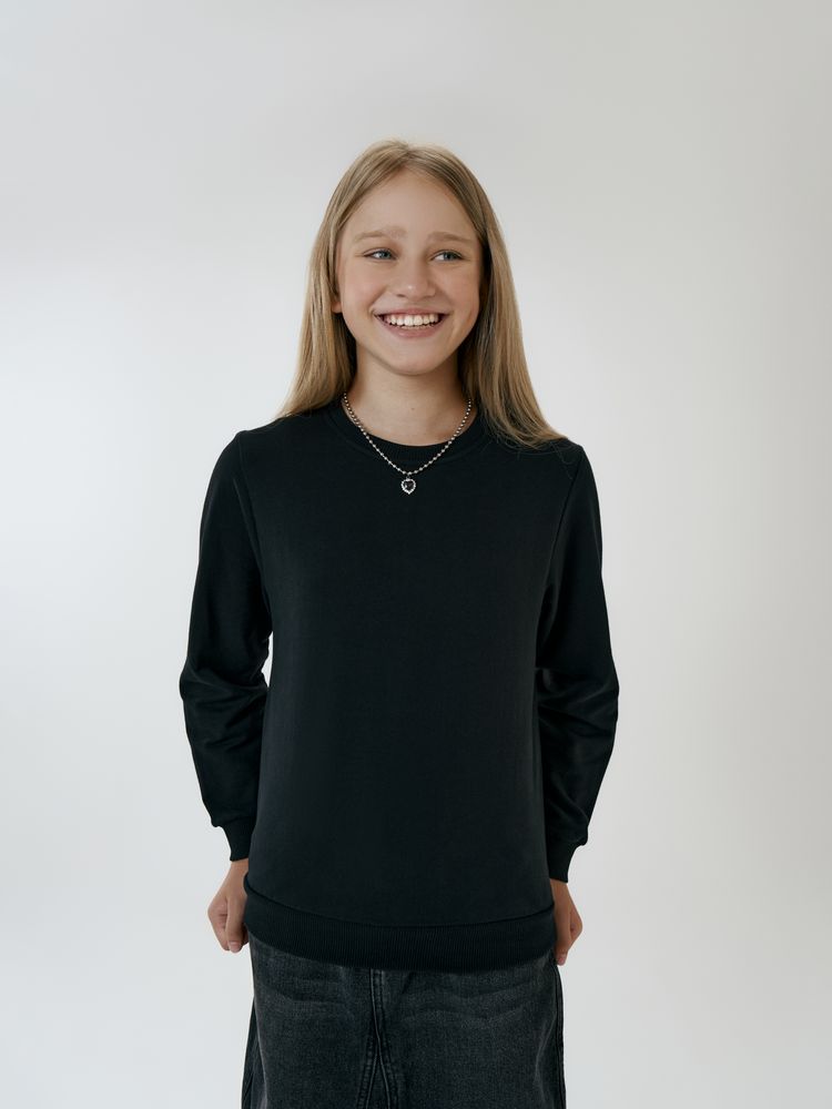 Легкий детский свитшот. Выполнен из высококачественного полотна, которое прошло активное крашение, предварительную термоусадку и обработку энзимами.