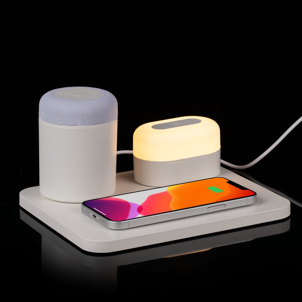 Trilogy — многофункциональное устройство, три составляющих которого эффектно дополняют друг друга: это bluetooth-колонка, переносная лампа и площадка для беспроводной зарядки гаджетов.