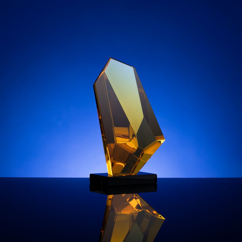 Эта стела-кристалл с легкостью поместится на ладони и подарит бурю положительных эмоций при награждении! Оригинальные стелы Cristallino напоминают эстетичные обломки настоящих кристаллов или минеральных камней, притягательных в своей уникальности и естественной простоте. Благодаря материалу — премиальному стеклу К9 — и особой технике окрашивания рождается оптический эффект: свет преломляется сквозь цветные грани, делая всю награду живой и яркой.