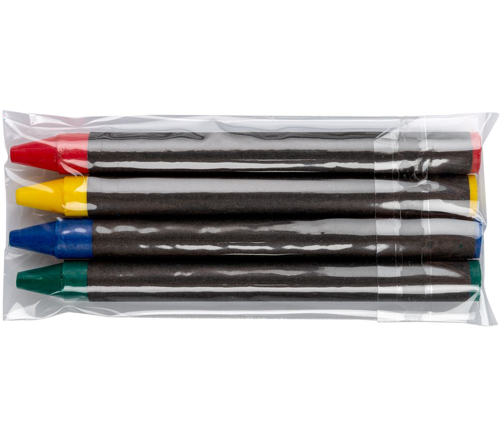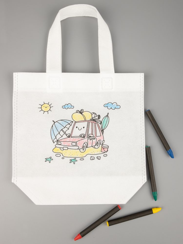 В наборе сумка и набор из 4 восковых карандашей.