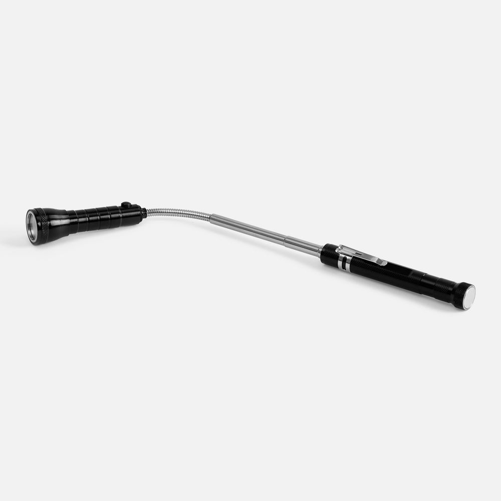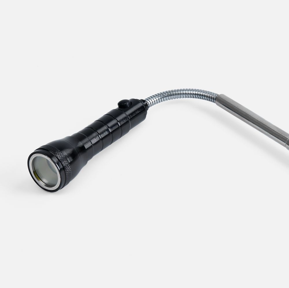 Компактный фонарик Flexion — идеальное средство для освещения труднодоступных мест. Регулируемая длина и гибкое крепление лампочки позволяют направленно и точечно подсвечивать нужные зоны в самых сложных местах, например, под капотом или за мебелью. С помощью магнита на корпусе можно закрепить фонарь на металлической поверхности, освободив руки, —особенно удобно при ремонте, строительстве или работе в гараже. Магнит на излучателе поможет с легкостью достать упавшие в узкие щели металлические предметы.