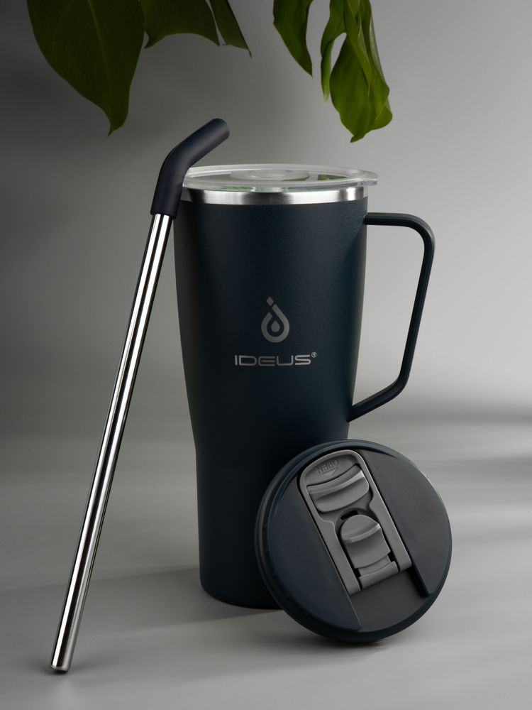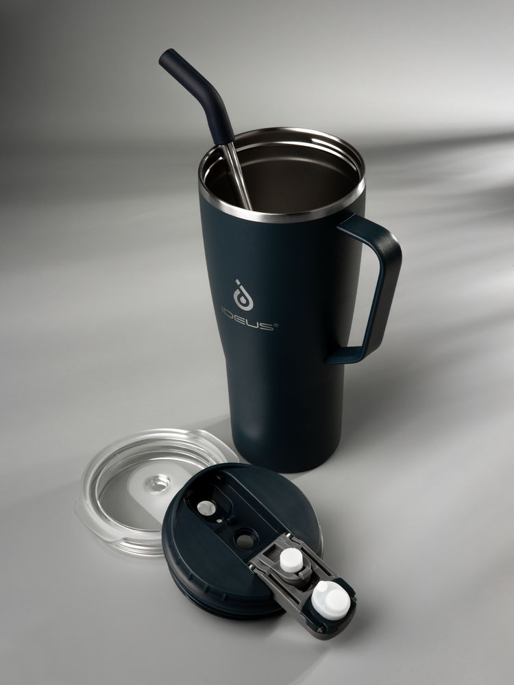 • 2 крышки в комплекте: одна на 100% герметичная с механизмом блокировки отверстия для питья, вторая — с отверстием для трубочки