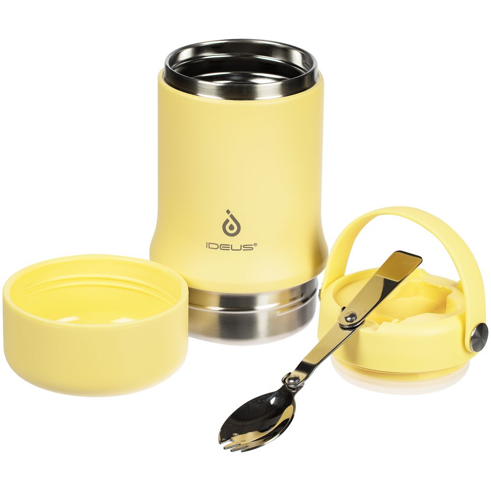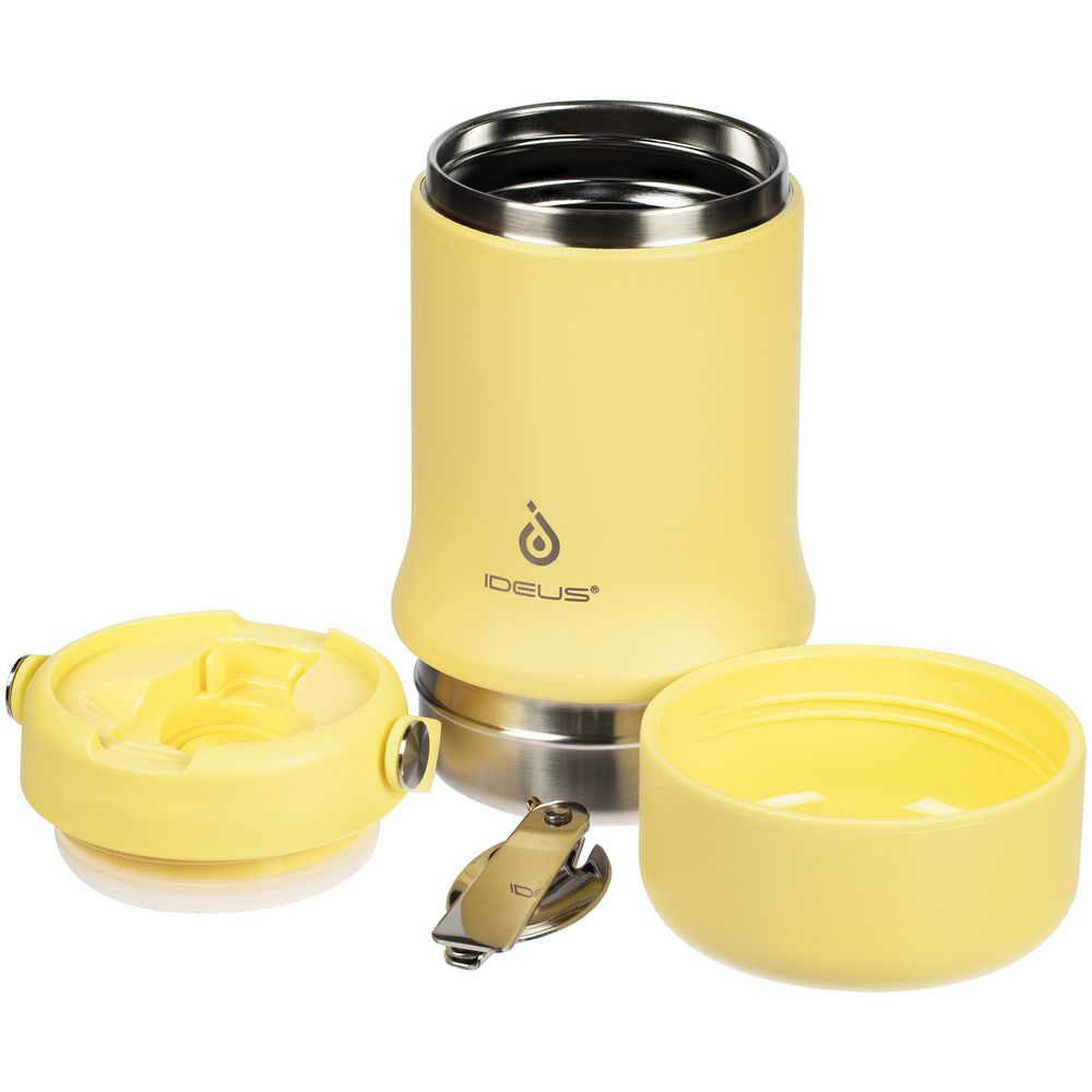 корпус — нержавеющая сталь, 18/8; крышка — пластик, пищевой силикон; ручка — полиуретан, термопластичный; ложка — нержавеющая сталь