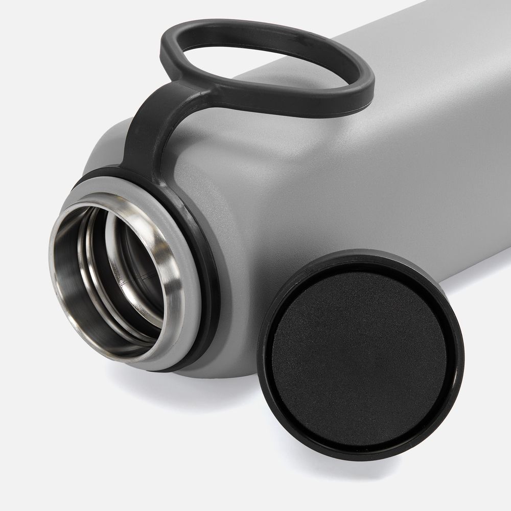 Термос оригинальной четырехгранной формы с надежной ручкой для переноски и удобным клапаном, который открывается и закрывается одним нажатием. Пить можно с любой стороны.