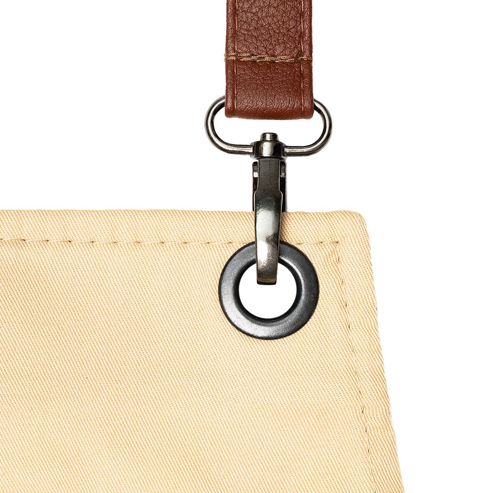 фартук — полиэстер 65%, хлопок 35%, плотность 240 г/м²; лямки — искусственная кожа; фурнитура — металл