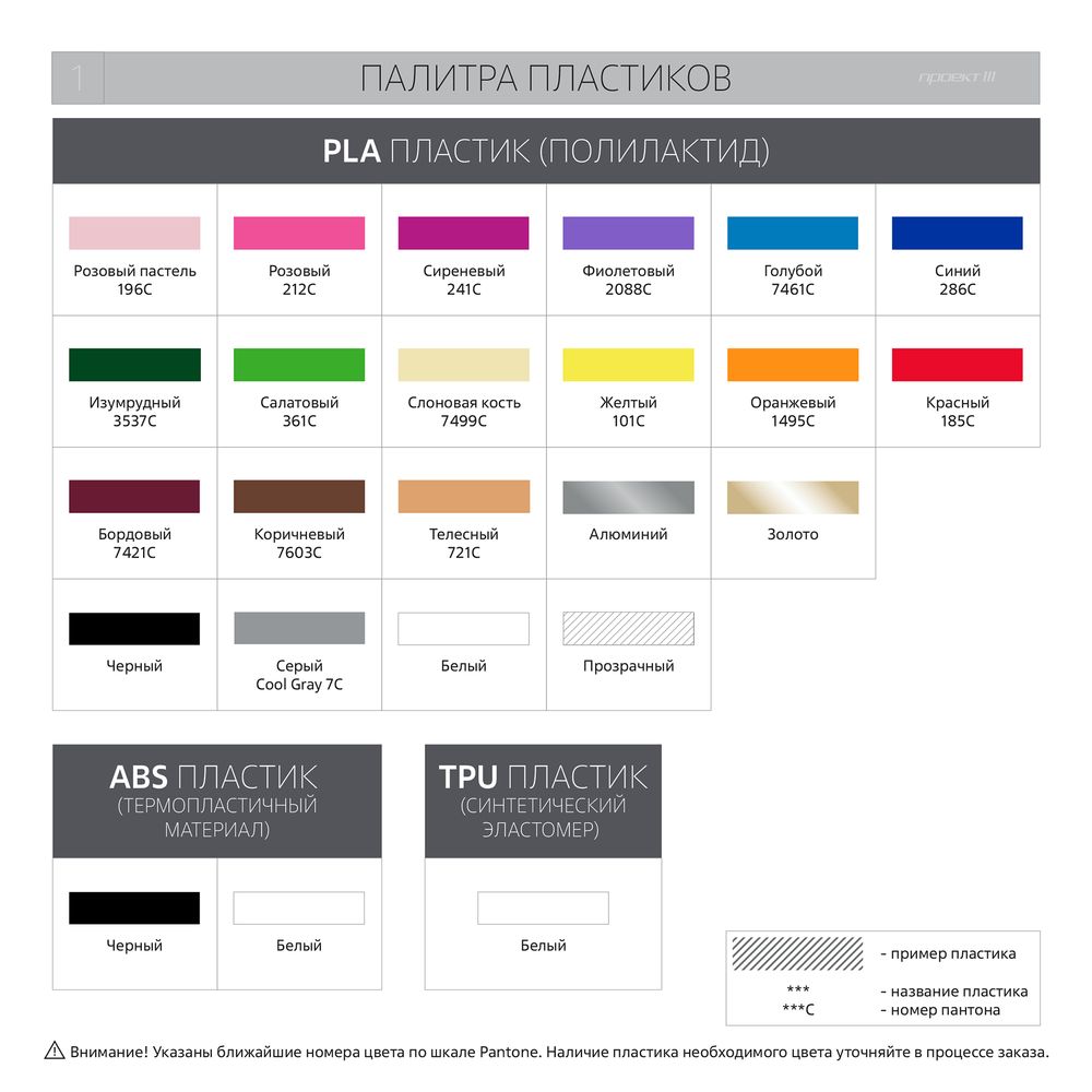 - Цвет и тип пластика. Варианты цветов можно посмотреть в разделе «Фотографии».