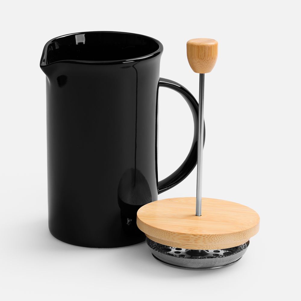 Элегантный керамический френч-пресс Mezzo в глянцевом черном исполнении — украшение для любого уголка, от уютной домашней кухни до стильного офиса.Емкость 600 мл.
