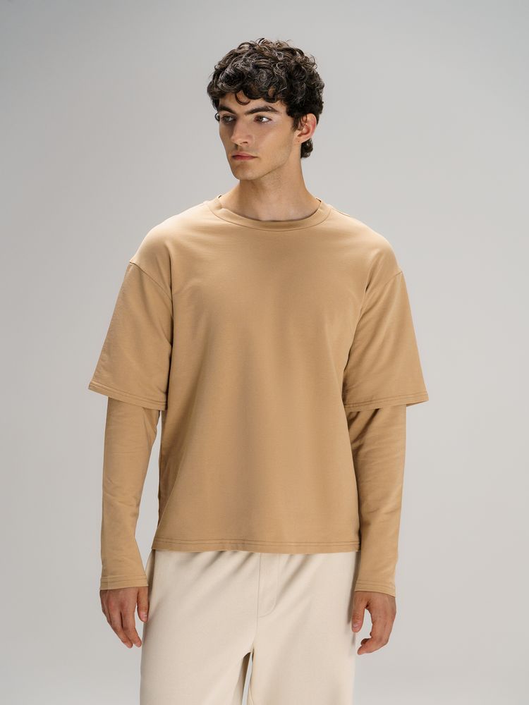 Футболка оверсайз в трендовом исполнении double sleeve (с двойным рукавом) — отличный вариант для создания повседневного образа. Легкая дышащая хлопковая ткань с гладкой трикотажной фактурой приятна к телу, а расслабленный оверсайз силуэт делает футболку Kosmos идеальной для любых жизненных маневров.