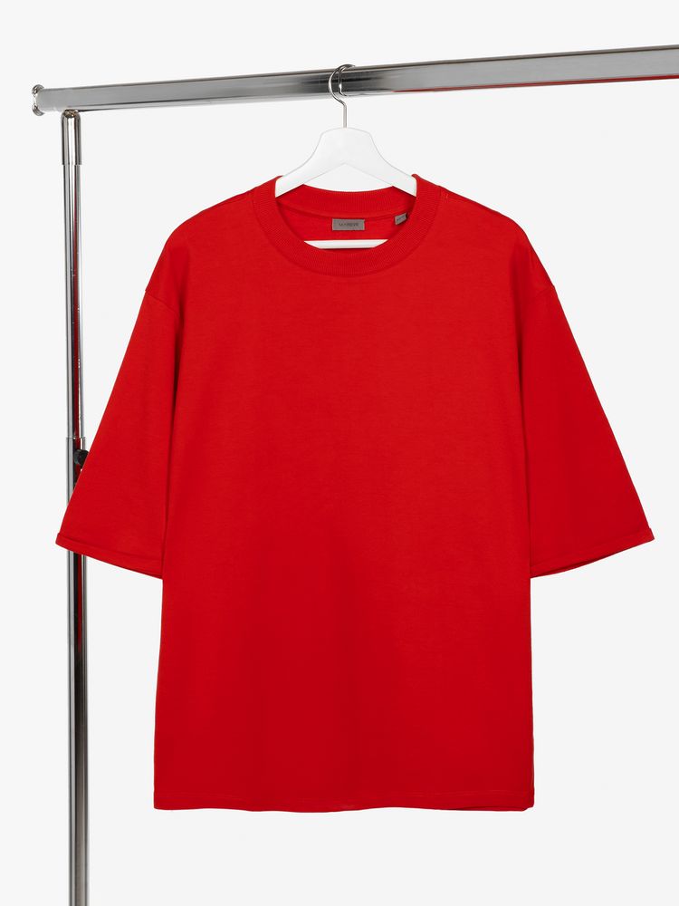 Футболка унисекс свободного кроя со спущенным плечом и смещенными плечевыми швами.