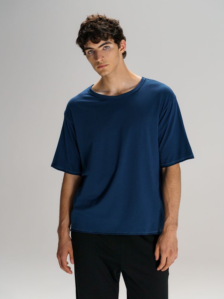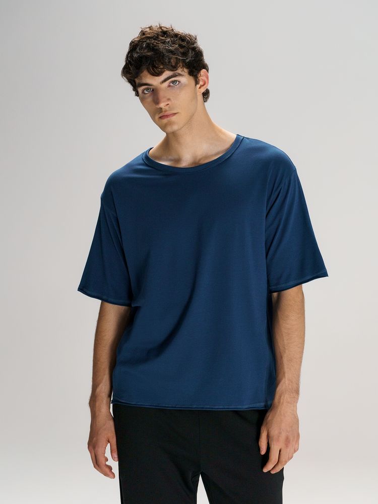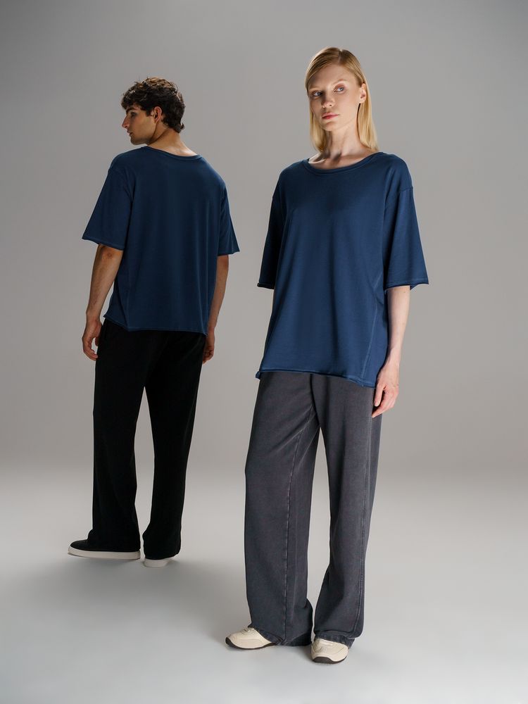 Футболка унисекс свободной посадки Vozduh создана для тех, кто следит за трендами и ценит комфорт. Необработанные края рукавов и низа изделия добавляют ему оригинальности и легкой небрежности, а боковые вставки создают притягательный летящий силуэт.