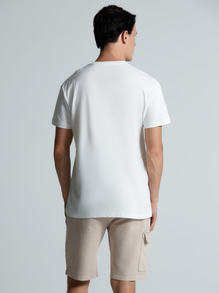 Футболка унисекс прямого силуэта без боковых швов (размеры S–4XL) или с боковыми швами (размер 5XL). Активное крашение полотна — изделие сохраняет цвет надолго.