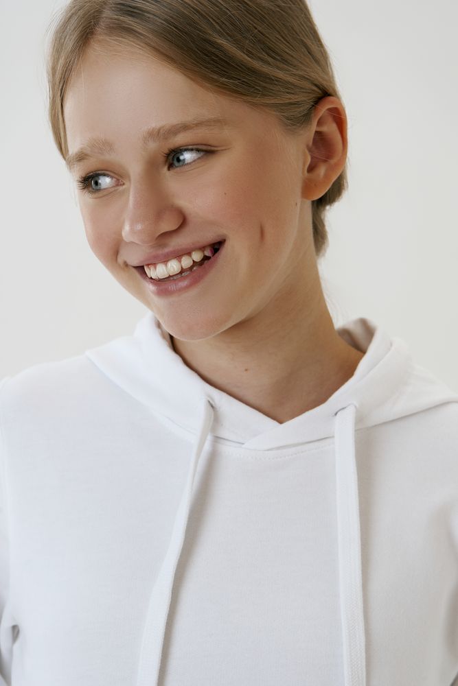 Легкое детское худи с карманом-кенгуру. Выполнено из высококачественного полотна, которое прошло активное крашение, предварительную термоусадку и обработку энзимами.