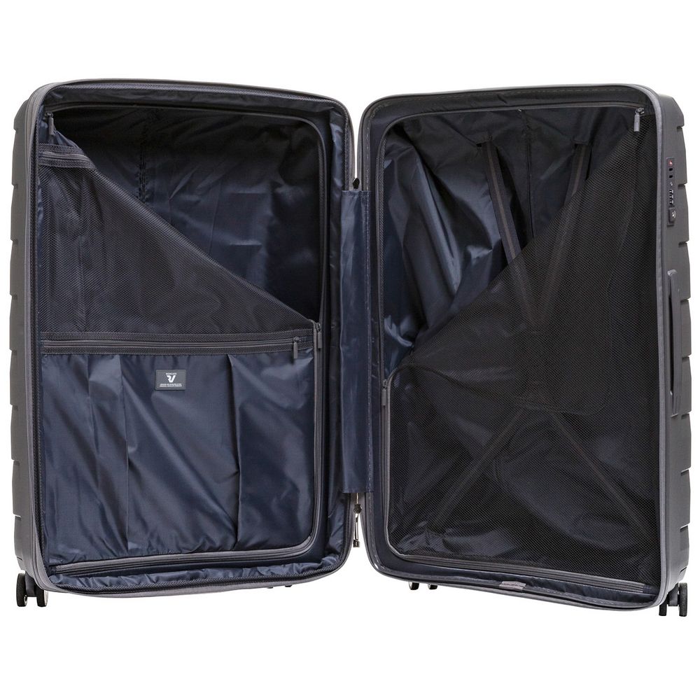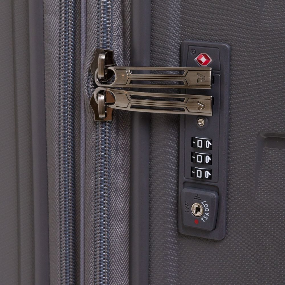 • Чемодан с 2 отделениями: одно из них с фиксирующими ремнями и сетчатой шторкой на молнии, второе — с разделителем на молнии