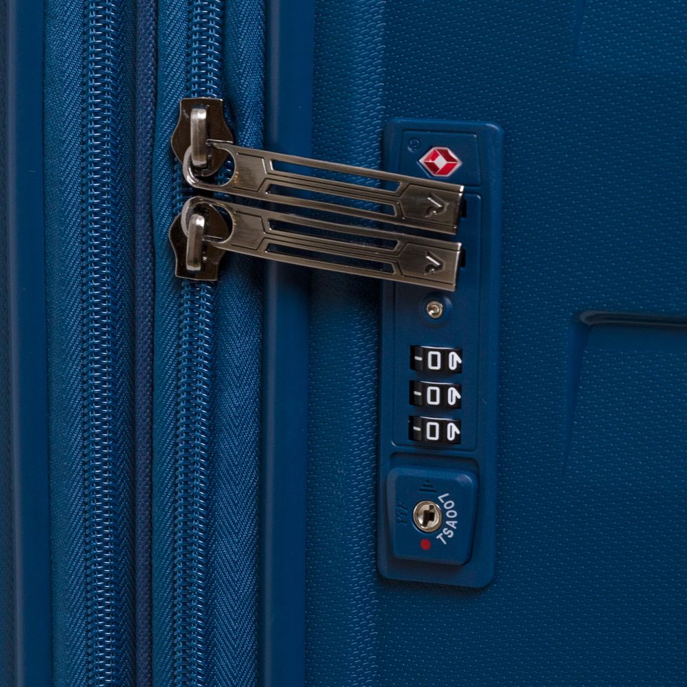 - Чемодан с 2 отделениями: одно из них с фиксирующими ремнями и сетчатой шторкой на молнии, второе — с разделителем на молнии
