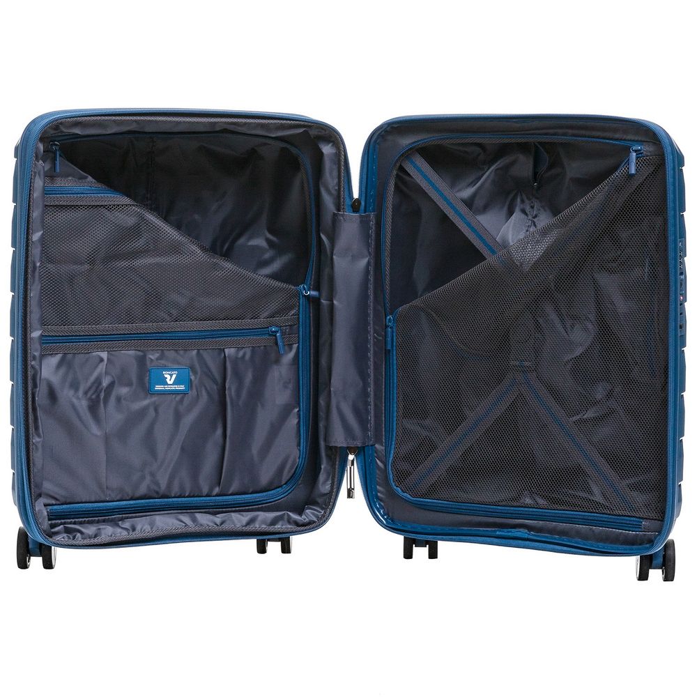 • Чемодан с 2 отделениями: одно из них с фиксирующими ремнями и сетчатой шторкой на молнии, второе — с разделителем на молнии