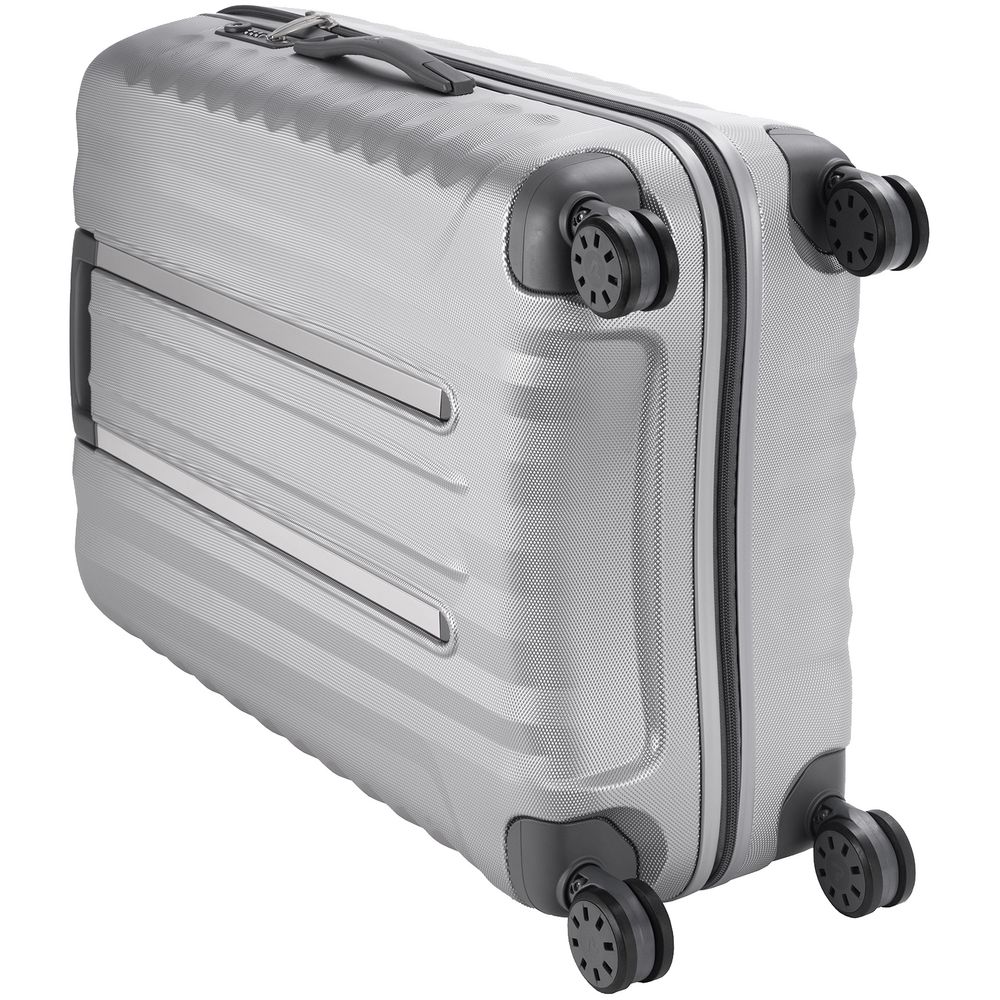 Корпус изготовлен из ударостойкого поликарбоната с покрытием, имитирующим алмазные грани, — такая технология препятствует появлению царапин и делает чемодан еще более прочным и выносливым.