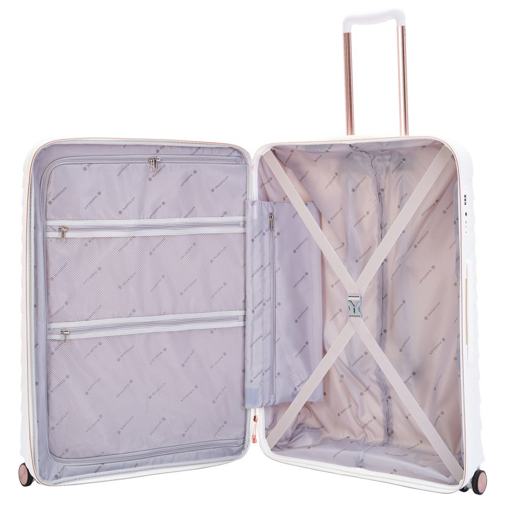 Одной из особенностей коллекции является функция расширения объема, которая позволяет привозить с собой из путешествия еще больше подарков, памятных сувениров и модных аксессуаров.