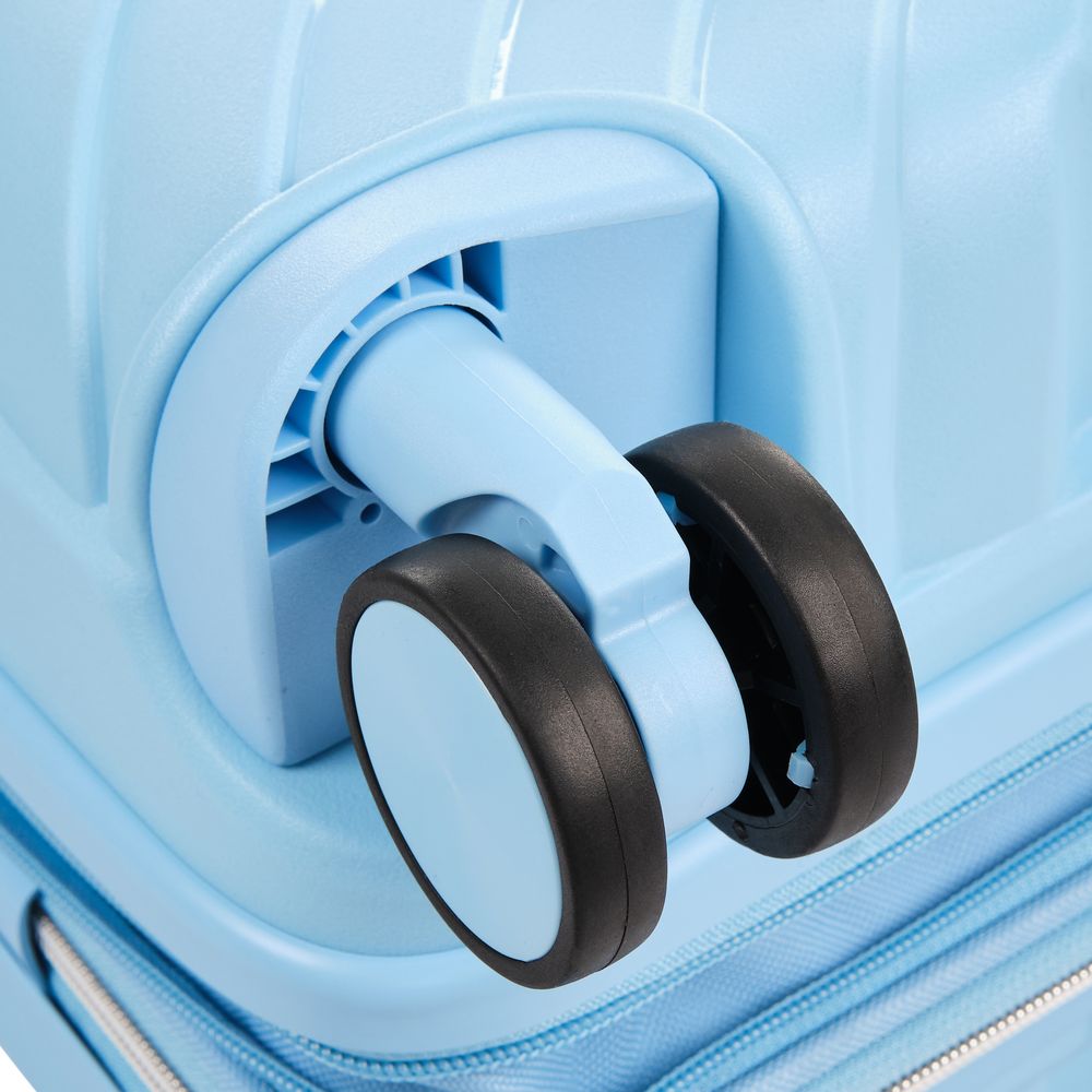 • Блок крепления колеса встроен в корпус чемодана, что обеспечивает лучшую устойчивость к внешнему воздействию
