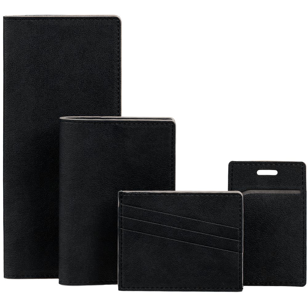 Чехол выполнен из материала Petrus, черный АА, дополнен окрашенным срезом края и внутренним карманом из серого картона. Имеет 4 отделения для кредитных карт и 1 отделение для купюр.