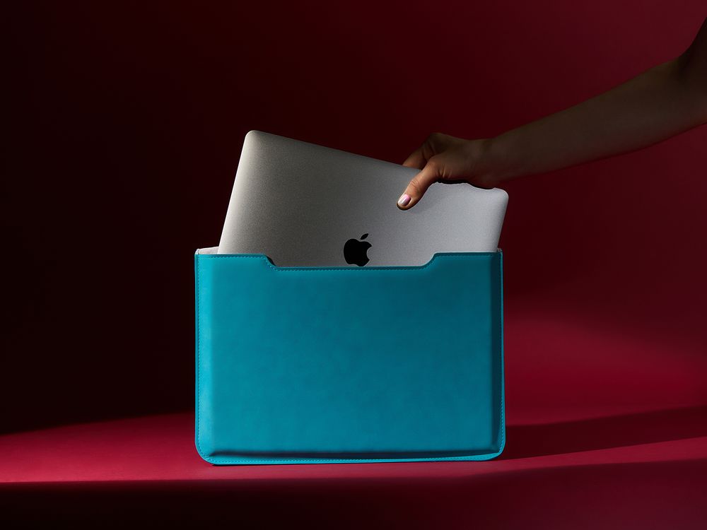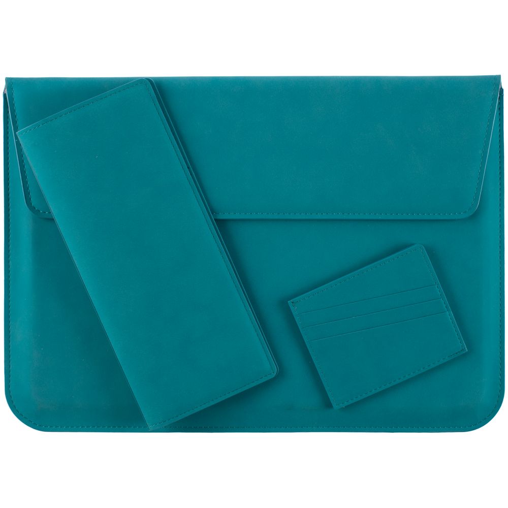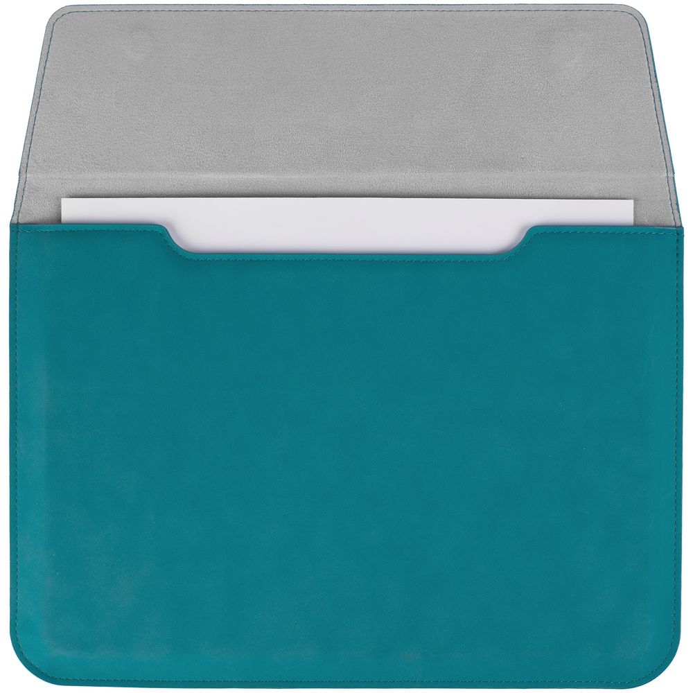Чехол для ноутбука с диагональю до 13″, выполнен из материала Nubuck, цвет морской волны II, внутри серый велюр.