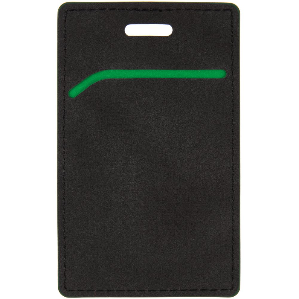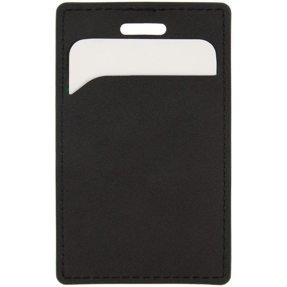 Чехол выполнен из материала Soft Touch Pearl, черный АА, дополнен окрашенным срезом края и внутренним карманом из цветного картона. Подходит для пропуска размером 9,5х5,7 см.