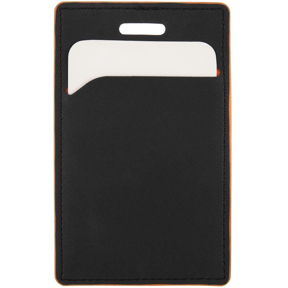 Чехол выполнен из материала Soft Touch Pearl, черный АА, дополнен окрашенным срезом края и внутренним карманом из цветного картона. Подходит для пропуска размером 9,5х5,7 см.