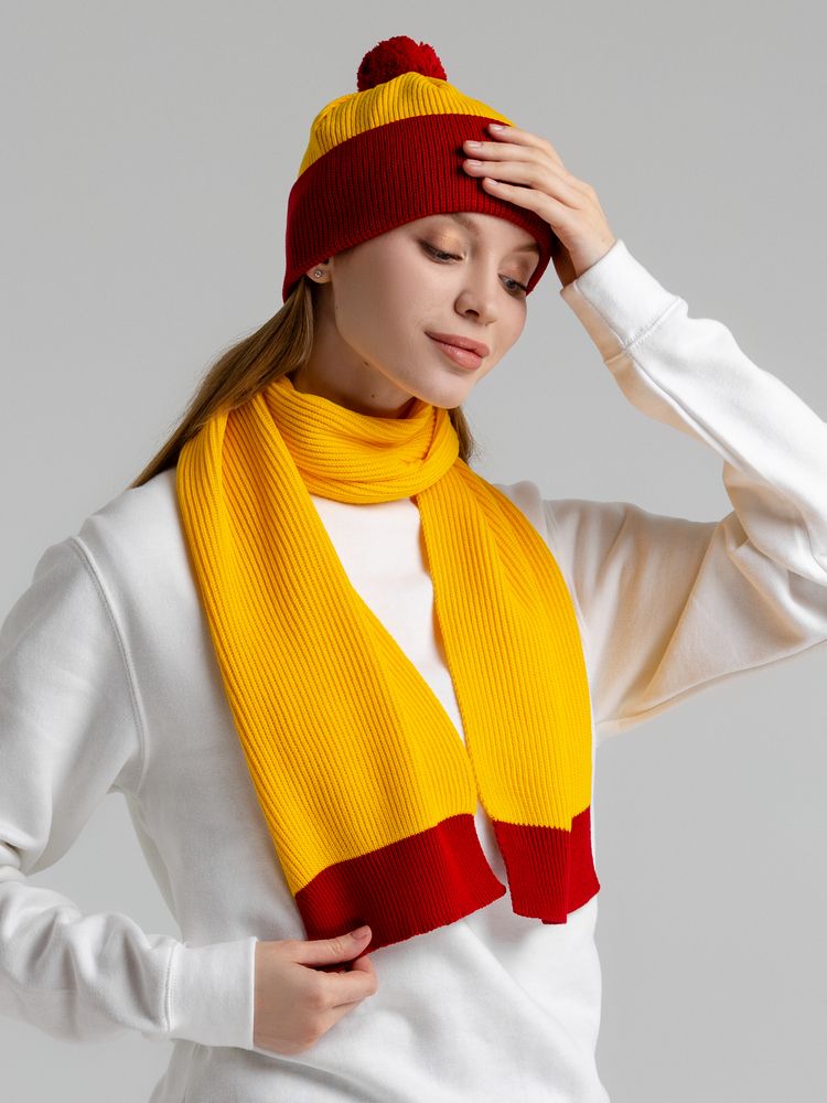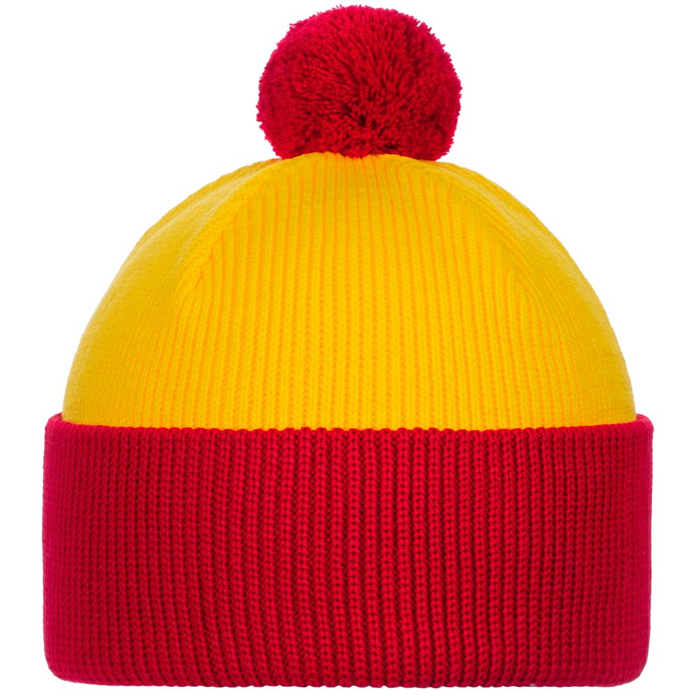 + Free ShippingДвуслойная шапка фактурной вязки с контрастным подворотом и помпоном.