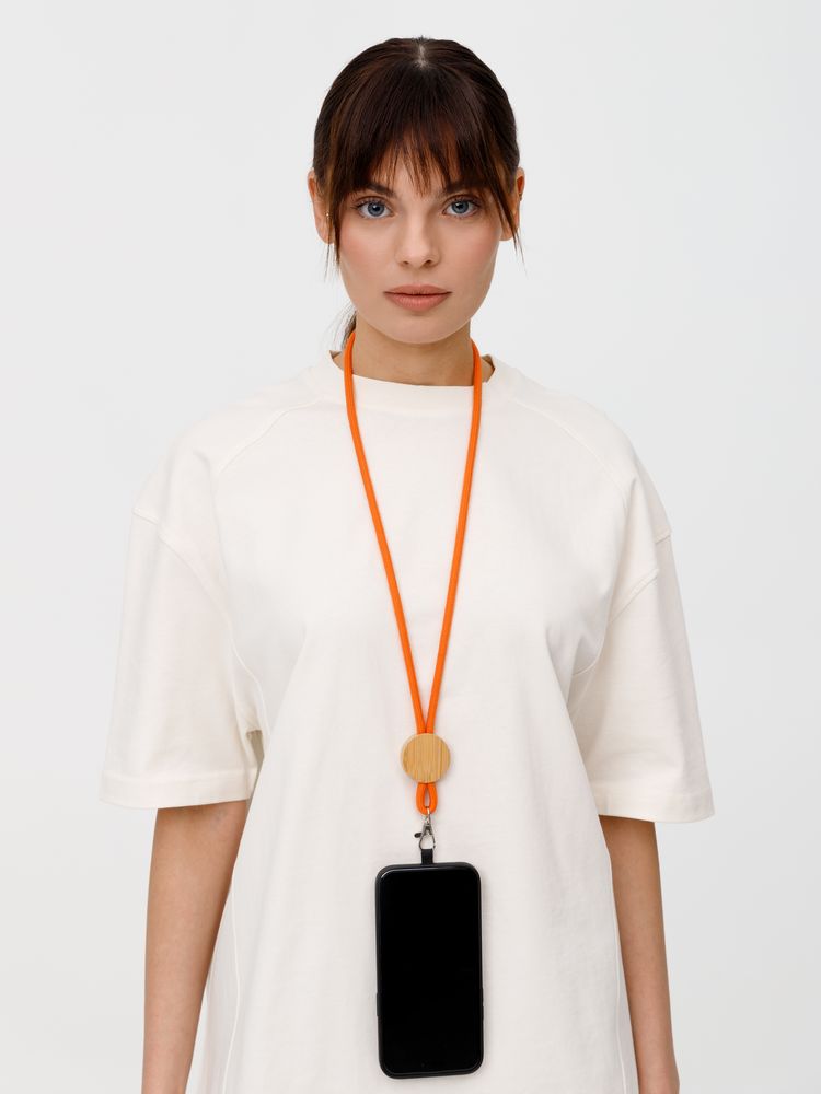 Шнурок для бейджа Tube Wood, оранжевый